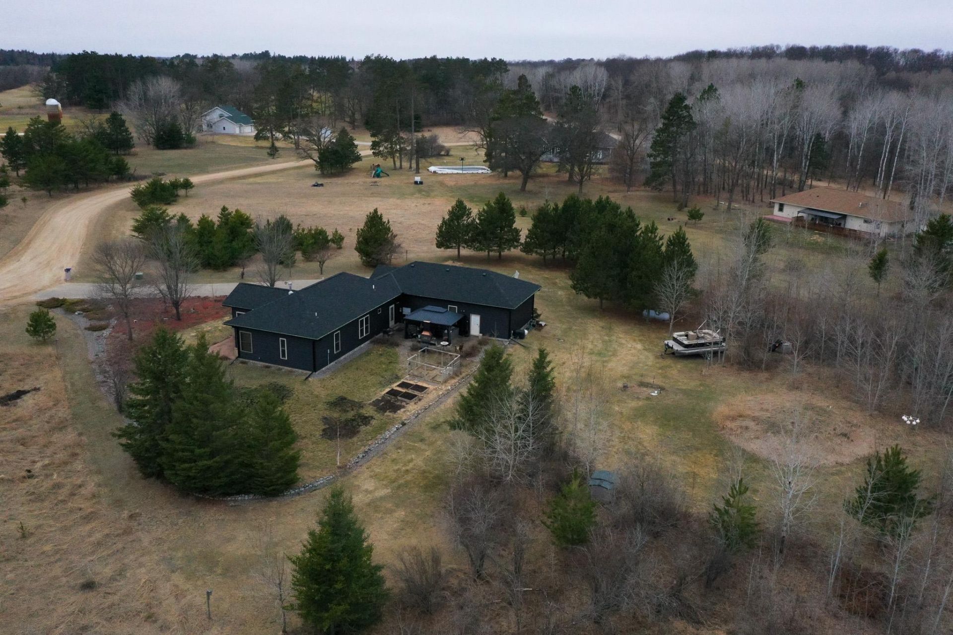 This home is a must see! Inside, the home features beautiful cabinetry, granite countertops, hardwood floors, and a large open kitchen and living area. The sunroom adds additional living space and is a standout feature of the home. Wait until you see it! The primary suite includes a walk-in shower, and the convenience of one-level living provides both comfort and functionality. There is a heated, attached 2-stall garage, along with an attached utility garage offering additional heated storage and a finished bonus space currently used as an office and home gym.Outside, the home sits on a +/- 1.19 acre lot with golf course views. The front deck offers a great space to enjoy quiet mornings, while the back patio features a gazebo and wood-burning fireplace, great for those cooler summer nights. Recent updates include new siding, soffit, fascia, gutters, and shingles in 2025. This home is move-in ready.