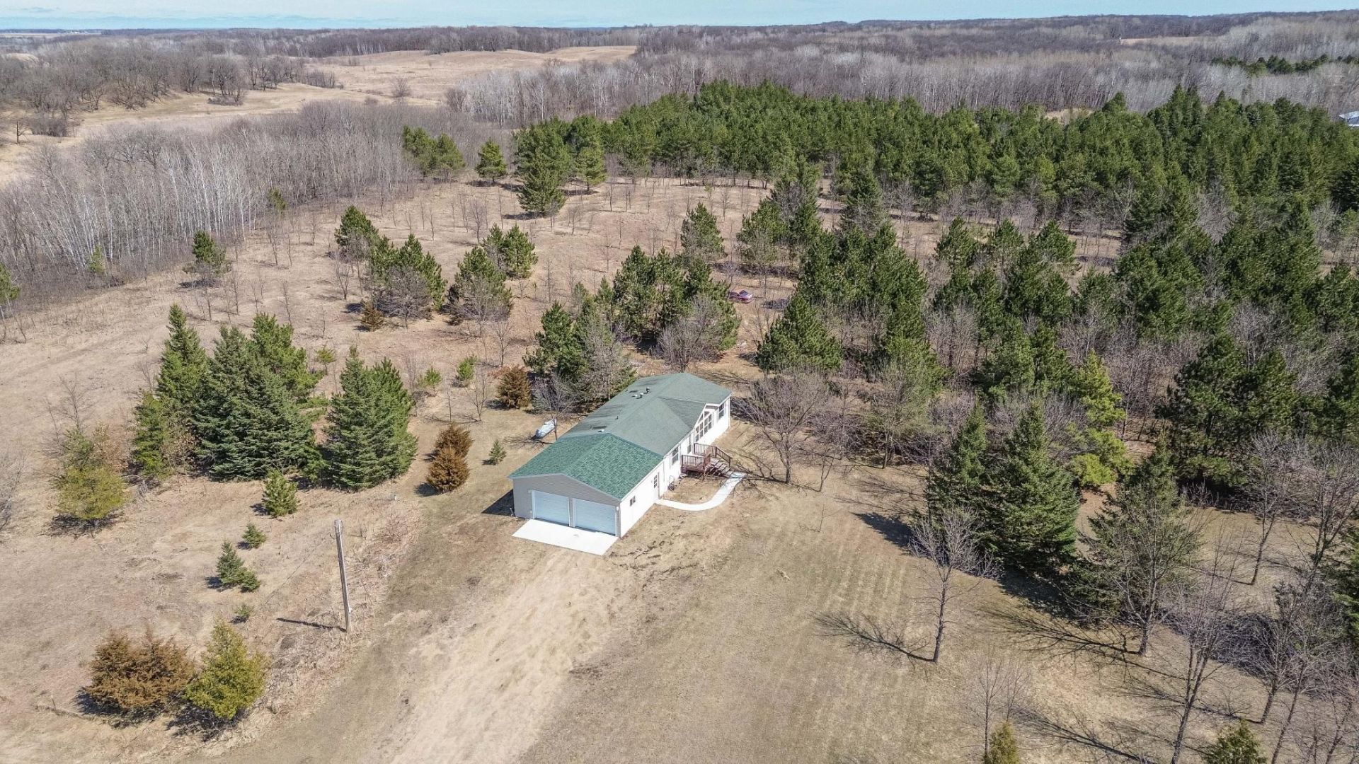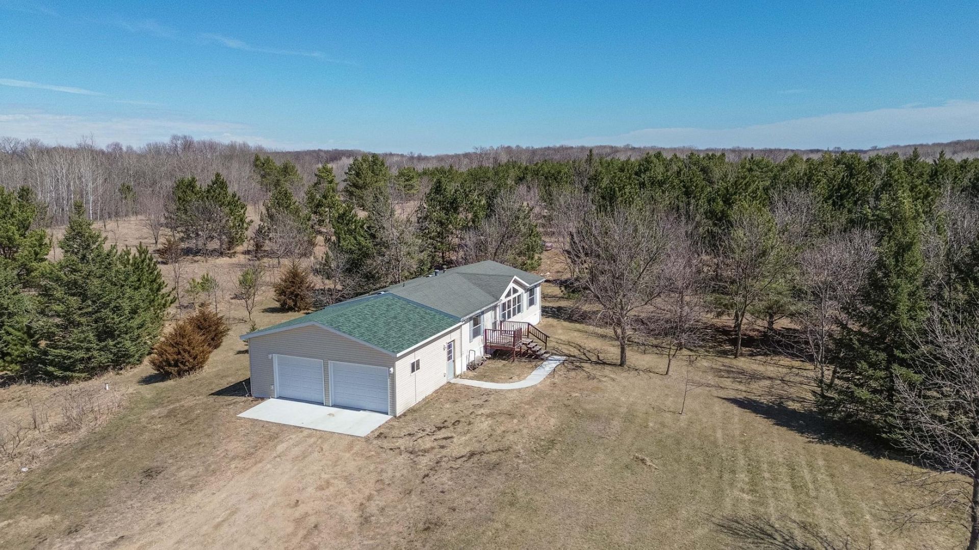 Just outside of Dent, this affordable home sits on 3 gorgeous acres of trees. This 1995 manufactured home was well cared for and features a main floor primary suite, three bedrooms in total and two spacious bathrooms. A comfortable living room with vaulted ceilings and large windows overlooking the private acreage. Included is a new 2 stall attached garage with plenty of space for vehicles, mower and toys. Septic tank with drain field installed in 2002 and a 140' drilled well. Taxes to be verified as this is a recent split from a larger parcel. Call today for more information or to line up a showing!